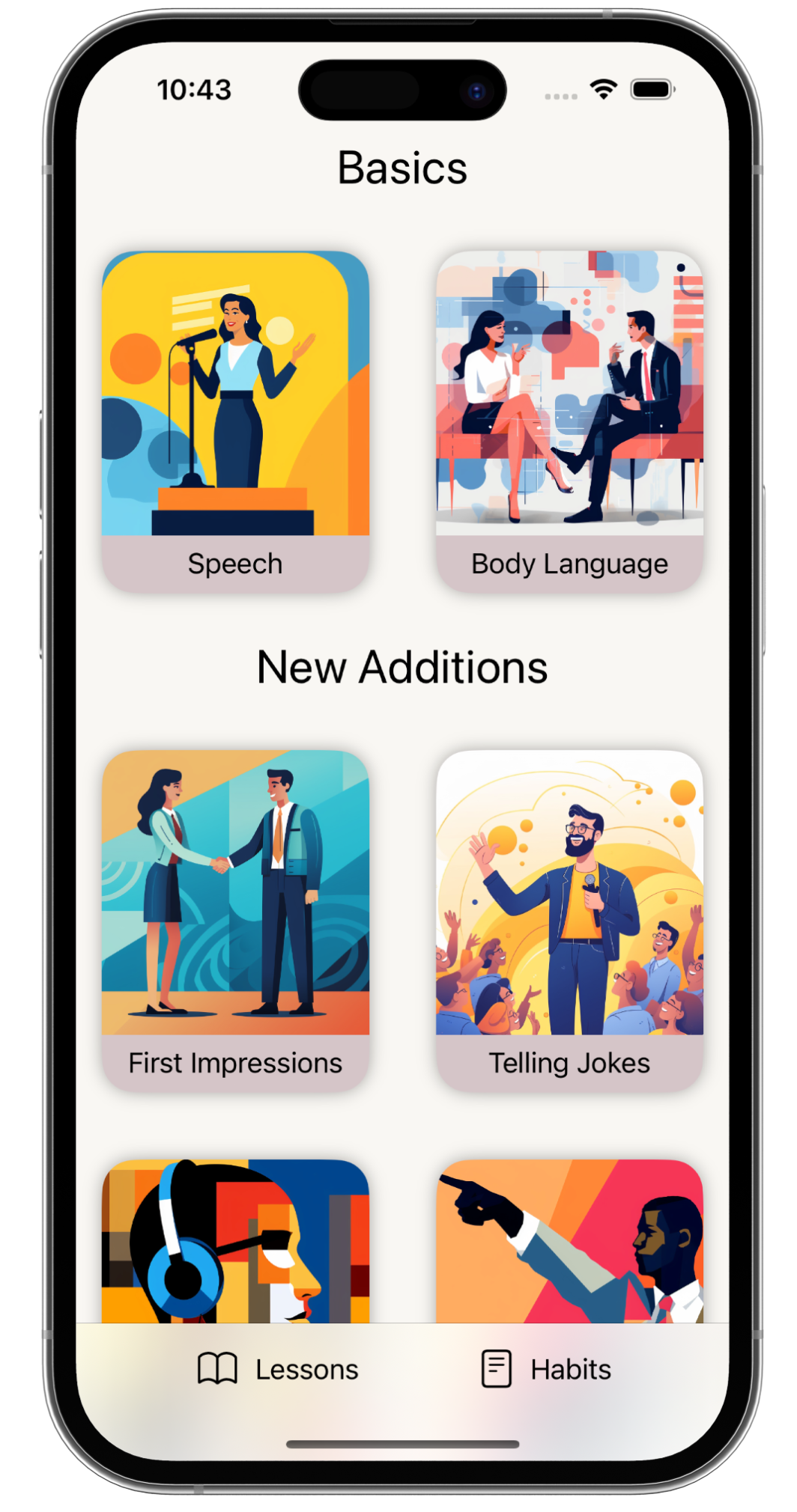Explore topics designed to elevate your charisma: body language, speaking skills, and more.